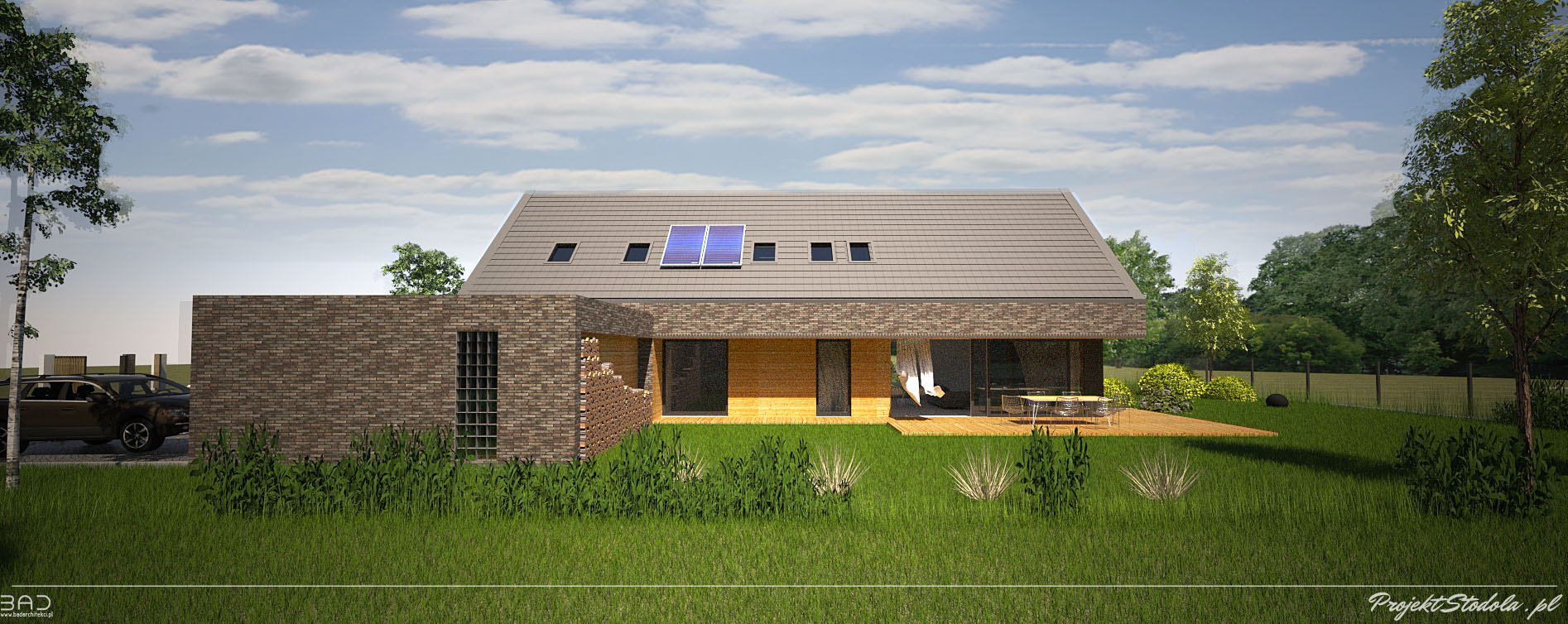 - Perspektywa południowa- alternatywne rozwiążanie elewacji- klinkier